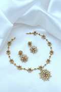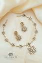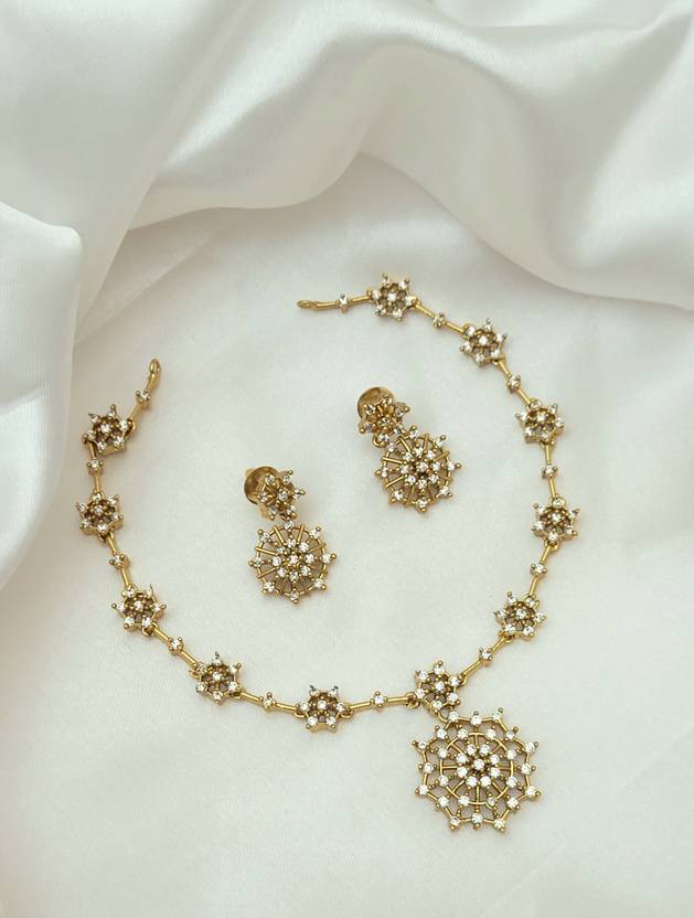 Elegents brings you premium quality WHITE AD Stone Diamond imitation necklace set for girls and women’s this set is crafted from gold-plated brass & AD stones.