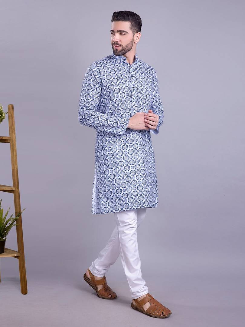 ELEPANTS Men Printed Cotton Blend Straight Kurta (Multicolor)