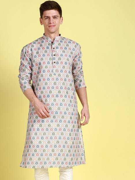 Men Printed Cotton Blend Straight Kurta (Multicolor)