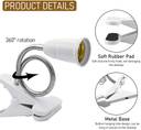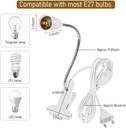 APPLICABLE BULB SPECIFICATIONS: Bulb holder fit in E27 lamp bulbs (permits Max power 45W). This desk clip clamp lamp holder is recommended that your bulb weigh within 150g. Do not use heat bulb. The main function of this clip light can be for mobile use, decoration, not for high power bulbs. There's no ceramic on the inner wall of the lamp base, no heat insulation. Please considering a lot before choosing whether to take it or not.360? ROTATING LIGHT NECK: The flexible 20cm gooseneck permits your light of all direction, up and down, horizontal and sloped, you can adjust freely the lighting angle, height as your needs, more convenient to use. To maintain the lifespan of the hose, please do not adjust the angle frequently. Because of its bad memory and too many angle adjustments, This 360 degree flexible clamp lamp fixture will become more and more naughty, so as not to drag the light bulbs up. STRONG CLAMP FORCE: E27 bulb holder with the non slip and stable clip, you can clamp the desk lamp on the edge of table, the max clamp range is 6cm. The strong clamping force can be firmly hold the desk lamp on the table. There is a pair of holes on the clamp. If you don't have a place to clamp the plug in clip lamp holder, you can hang the clip desk lamp socket anywhere through the hole. One clamp permits you multiple installations.1.8M POWER CABLE WITH POWER SWITCH: The clamp-on light fixture comes with 180cm cord, ON/OFF switch is in the middle of the wire. You can control the button easily. 3-prong EU plug, plug and go, works with most household electrical outlet. Ideal as a desk lamp, mobile light and reading light. It's also a good idea to install a colored light bulb in the base stand to create different light atmosphere. Small but functional. Adjust a proper angle, and let the clamp lamp fixture serve you.WIDE APPLICATION: This LED E27 desk light fixture is widely used as plant grow light, night light, desk work light, reading light, etc. Bulb holder with plug socket is made of premium PC material to ensure better tension, sturdy and durable to use.