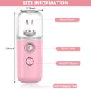 HYDRATION ON THE GO: Our nano face mist sprayer emits a fine mist to keep your skin moisturized in any setting. Compact and easy to carry, the mini face steamer assures a continuous hydration fix for your skin, making daily skincare routine effortless and ensuring your skins pampering even outdoors.CHARMING DESIGN: Delight in the playful bunny cartoon aesthetic of our nano mist sprayer. Not just a treat for yourself, it is a thoughtful and practical gift choice for loved ones, making birthdays and surprises even more special with a touch of creativity.NOTE: please add mineral water to the spray, do not add pure water, distilled water, essential oils, hydrosols, viscous liquids, etc., because whether the water density is too high or too low, it will to poor atomization and water droplets or blockage in the spray nozzle; When adding liquid, dont be too full, thus the sprayer works better; You can add perfume, milk, alcohol for other usages, just explore by yourself, but please remember to adjust the ratio, the recommended ratio is 10: 1.USB RECHARGEABLE CONVENIENCE: Equipped with a 150mAh battery, our face mist machine transforms 90ml of water into nourishing mist per charge, supported by versatile USB charging from power banks, AC adapters, or car chargers. Stay hydrated without the hassle.PERFECT PORTABILITY: Boasting a convenient 30ml capacity, this lightweight mist face spray is your hydration companion wherever you go. Easily refillable with water, it's ideal for quick skin refreshment outdoors, at the office, or during travel.