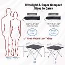 FOLDABLE DESIGN: Thanks to the assemble and foldable design, the rack and camping table can be folded up, space saving, coming with a storage bag, convenient to carry.ANTISLIP FOOT PAD DESIGN: 4 anti slip table feet design makes the table for more stabiity. The camping table is designed for various outdoor environments.SPECIFICATIONS: Height: 12.79''; table top size: 39.5*34.5cm/15.5*13.5'', offers enough seating room for 1-3 people . Can stand with 25kg max.PERFECT CAMPING TABLE FOR OUTDOOR: Perfect height and size for drinks and snacks when relaxing on your camping chairs. This table is also good for picnic in the garden, fishing, or used as a beach table, blacony table, also a great table for RV.STURDY CONSTRUCTIONS: Designed with assemble camping table. The camping table is made of Aluminum material with coating, featuring anti-rust, sturdy, no deformation durable to use. Sturdy and premium aluminum rack make the camping table more suitable for various outdoor environments.