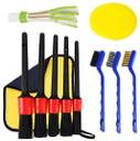 Car Detailing Brush Set: There are 11 pieces different car brush set in total including (5 different sizes car detailing brushes; 3 pcs wire brush; 1pcs car wash towel; 1pcs Car Wax Applicator Pads; 1 Car Air Vents Cleaning Brush.Meet All Your Needs for Car Cleaning: The car brush kit contains everything for internal and external cleaning.Excellent soft plastic brush set, very suitable for internal detail processing/cleaning. They are of proper length and have hard bristles to remove brake dust. Exquisite internal vent cleaner and soft microfiber cloth can be wiped clean in the end.High-Quality Material: Car Detailing Brush is made of boar hair mixed with synthetic fiber, Handle holes for hanging, Can get through any dust and crumbs without problem. The soft and gentle bristles are soft enough for the interior.3Pcs Wire Brushes: Used to clean rust and stains on tires. Non-slip handles design can increase friction to prevent falling. But you need be careful with using it with proper strength in case scratching off the paint.Wide Application: Suitable for cleaning car interior, exterior, wheels, dashboard, seat gaps, spokes, vents, rims,engine bays and exhaust tips etc. Be good at water washing, quick detailing, sealant, glaze and wax removal, indoor or outdoor for your car, truck, motorcycle and household wares.
