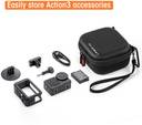 CARRY BAG FOR DJI OSMO ACTION 3 CAMERA: Carrying case specially designed for DJI OSMO Action 3 Camera, precision-molded grooves to perfectly store your DJI OSMO Action 3 Camera and other accessories, providing excellent protection for your DJI Action 3 Camera from randomly moving and everyday scratches and bumps.PREMIUM DURABILITY: Casing with PU material, hard case, of great wear resistance, anti-scratch, waterproof, well protect your devices form water, dust, collision, etc. Lycra fabric lining mold chamber can prevent any scratches on your device.KEEP ACCESSORIES WELL ORGANIZED: Inside of the carring case, three precisely-molded compartment for tripod and your DJI OSMO Action 3 Camera, and a mesh zipper bag for data cable or other accessories, keeping all devices firmly stay in place during travel.CARRY HAND STRAP: Compact and portable, the full opening zipper design is easy for access, and the carry hand strap design is convenient for you to carry out for travel.UTILITY CARRY CASE FOR DJI OSMO ACTION 3 CAMERA: Simple and classic designed accessories bag for DJI OSMO Action 3 Camera, brings you great convenience for outdoor filming, protecting your devices safe and well organized during travel or outdoor filming.