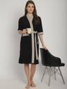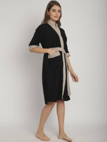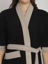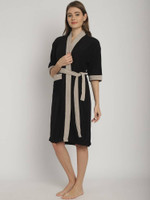 Owing to its three-quarter sleeves and knee-length design, this bathrobe can offer an ideal balance of coverage and comfort. This can allow you to move freely without feeling restricted. And, boasting an overlap closure with a belt, this bathrobe can deliver a secure fit. This can help it stay in place as you go about your morning routine or unwind in the evening. Moreover, thanks to its one front slip pocket, this bathrobe lets you conveniently store small essentials like your phone or tissues, keeping them within easy reach.