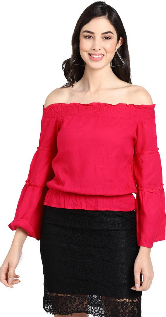 ELEVANTO Party Solid Women Pink Top