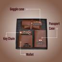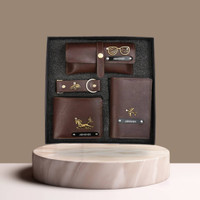 This set includes a spacious wallet with six card slots, a stylish sunglass case to protect his eyewear, a passport case for his travel documents, and a functional keychain for easy access to his keys. Each component serves a specific purpose, contributing to an organised travel experience. The wallet is designed to hold essential cards securely, while the sunglass case protects against scratches. The passport case ensures that important documents are kept safe, and the keychain allows for quick retrieval of keys, enhancing convenience during travels.