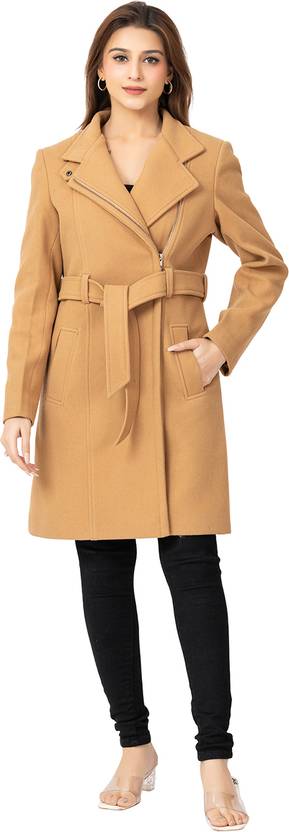 Eleveight Women Notch Lapel Collar Traditional Zipper Coat, Two Side pockets. Feel the warmth in the chilly winter & lend in style with this woolen coat from the house of Eleveight. This beautiful piece can belayered over any casual to formal attire while going out.