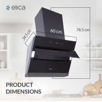 The chimney measures 60 cm (length), 78.5 cm (height) & 34.5 cm (width); making it ideal for a seamless installation in your kitchen.