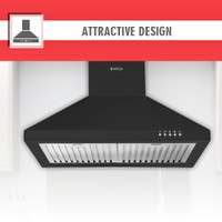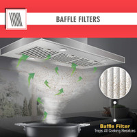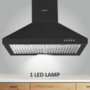 This chimney is equipped with two easy-to-clean baffle filters that eliminate smoke and greasy things from your kitchen. This ensures that your kitchen is smoke-free and oil-free.