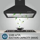 This chimney has a suction capacity of 1100 cubic meters per hour, thereby making your kitchen environment a smoke-free place while you prepare the most sumptuous dishes.