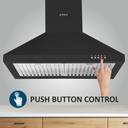 You can control the chimney easily by accessing the push buttons that are located on the control panel.