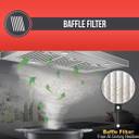 This chimney has an easy to clean and maintain baffle filter that removes unhealthy smoke, grease particles and other pollutants from your kitchen.