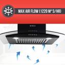 Enjoy a clean and fresh kitchen with this Elica chimney that has a suction capacity of 1220 cubic meters per hour. It emits low noise levels. It is low on maintenance and high on energy efficiency.