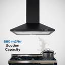 Offering a suction capacity of up to 880 cubic metres per hour, this chimney facilitates exceptional performance. So, you can cook your favourite dishes without worrying about smoke or dust.