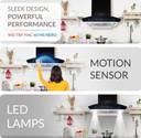 Loaded with premium features, black matte finish and elegant design, this chimney with motion sensor from the house of Elica is perfect for enhancing the decor of your kitchen. The combination of its beautiful appearance and toughened quality makes it a must have appliance for your kitchen.