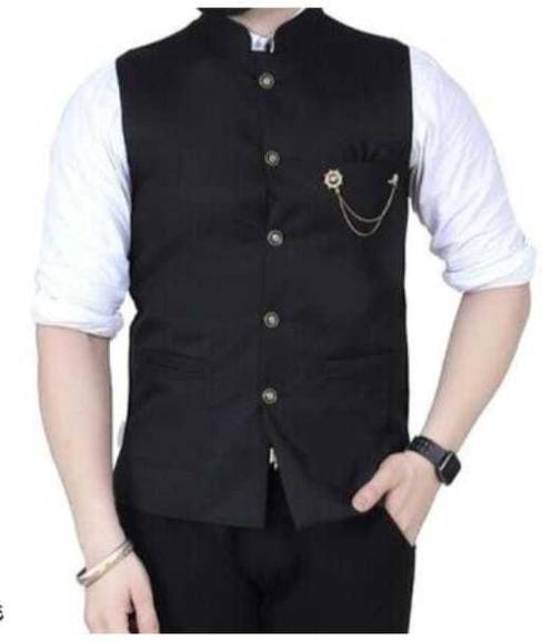 Eliq Solid Mandarin Festive & Wedding Men Blazer (Black)