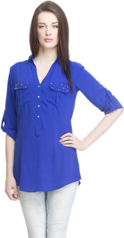Flaped Roll Up Sleeve, Princess Dart For Perfect Curvy Fit, Stylish Metallic Buttons, Suttle Partywear For All Occasions