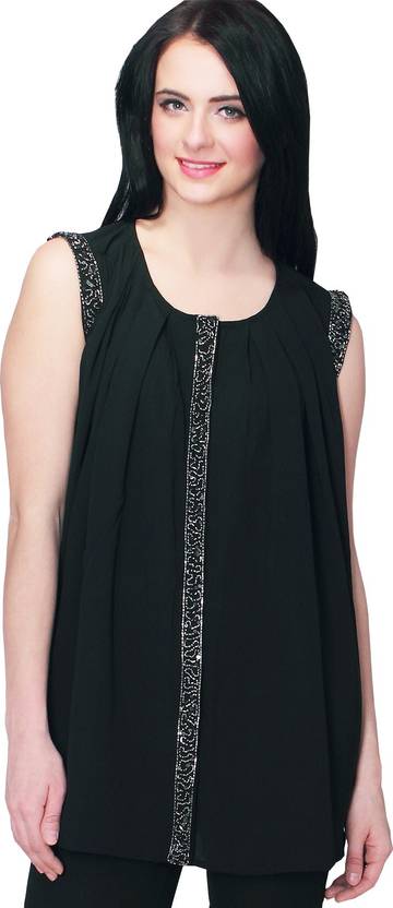 Party Sleeveless Solid Women Black Top