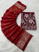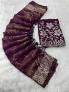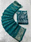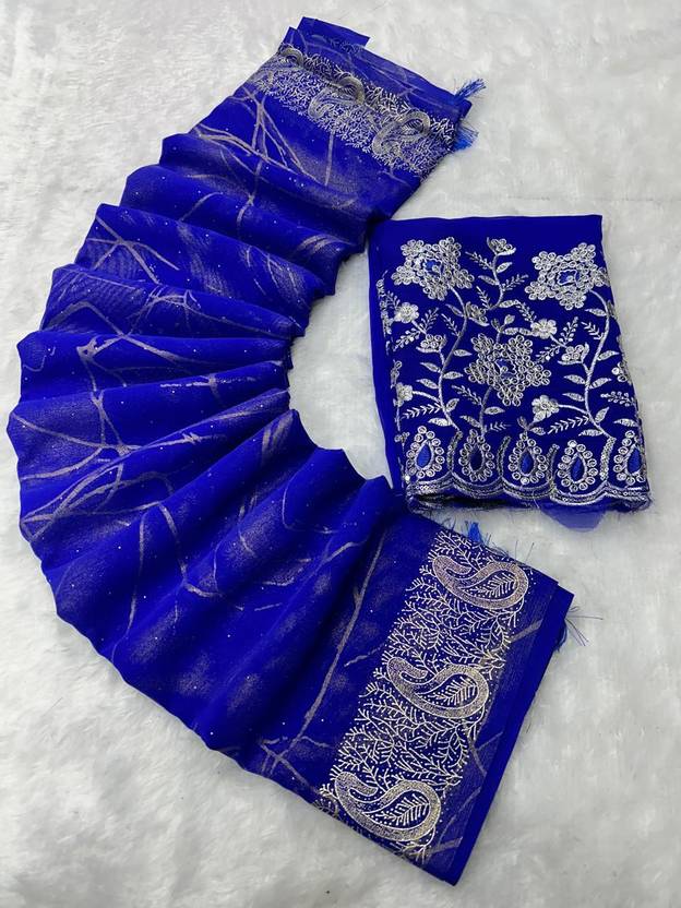 Elite Fashion Embroidered Daily Wear Georgette Saree (Blue)