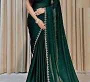 ELITEFOLIO Self Design Bollywood Net Saree (Black)