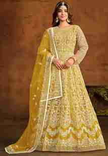 Embroidered Net Semi Stitched Flared/A-line Gown (Yellow)