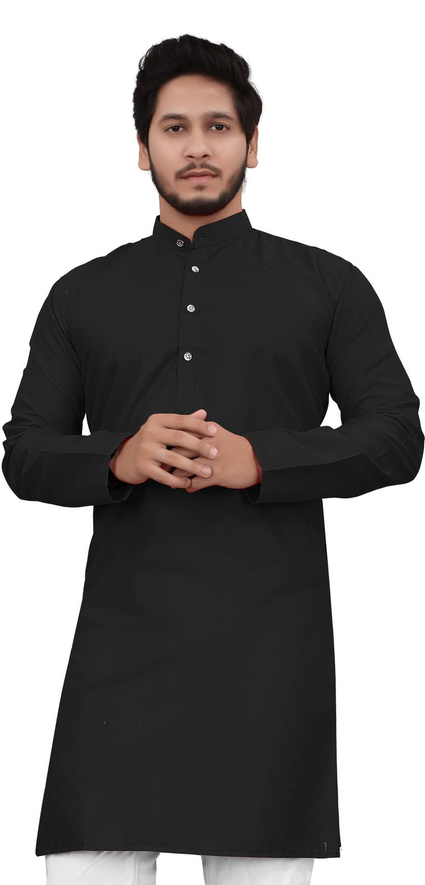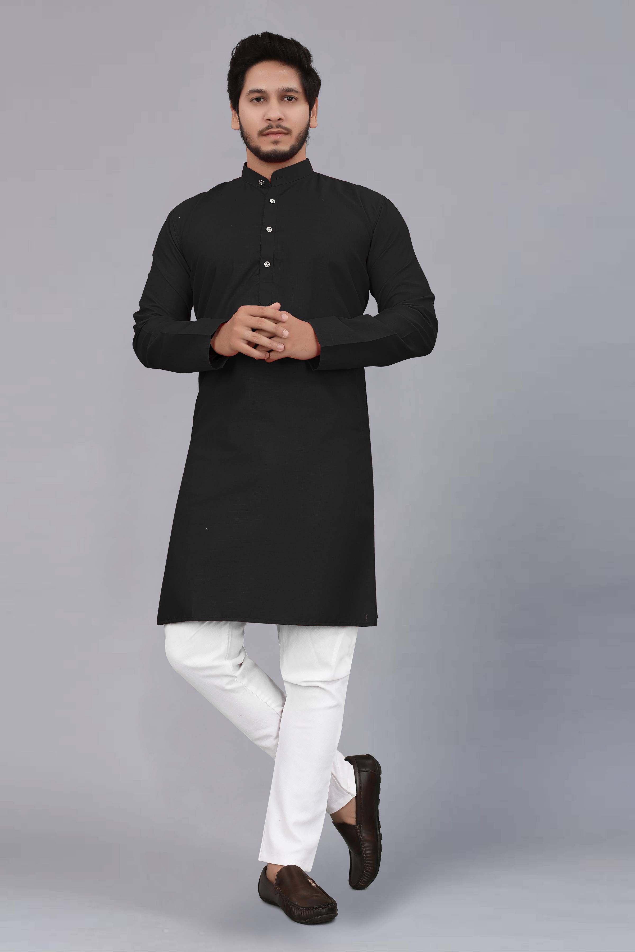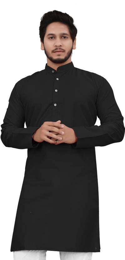 ellark Men Self Design Straight Kurta (Black)