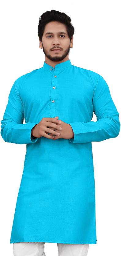 ellark Men Self Design Straight Kurta (Light Blue)