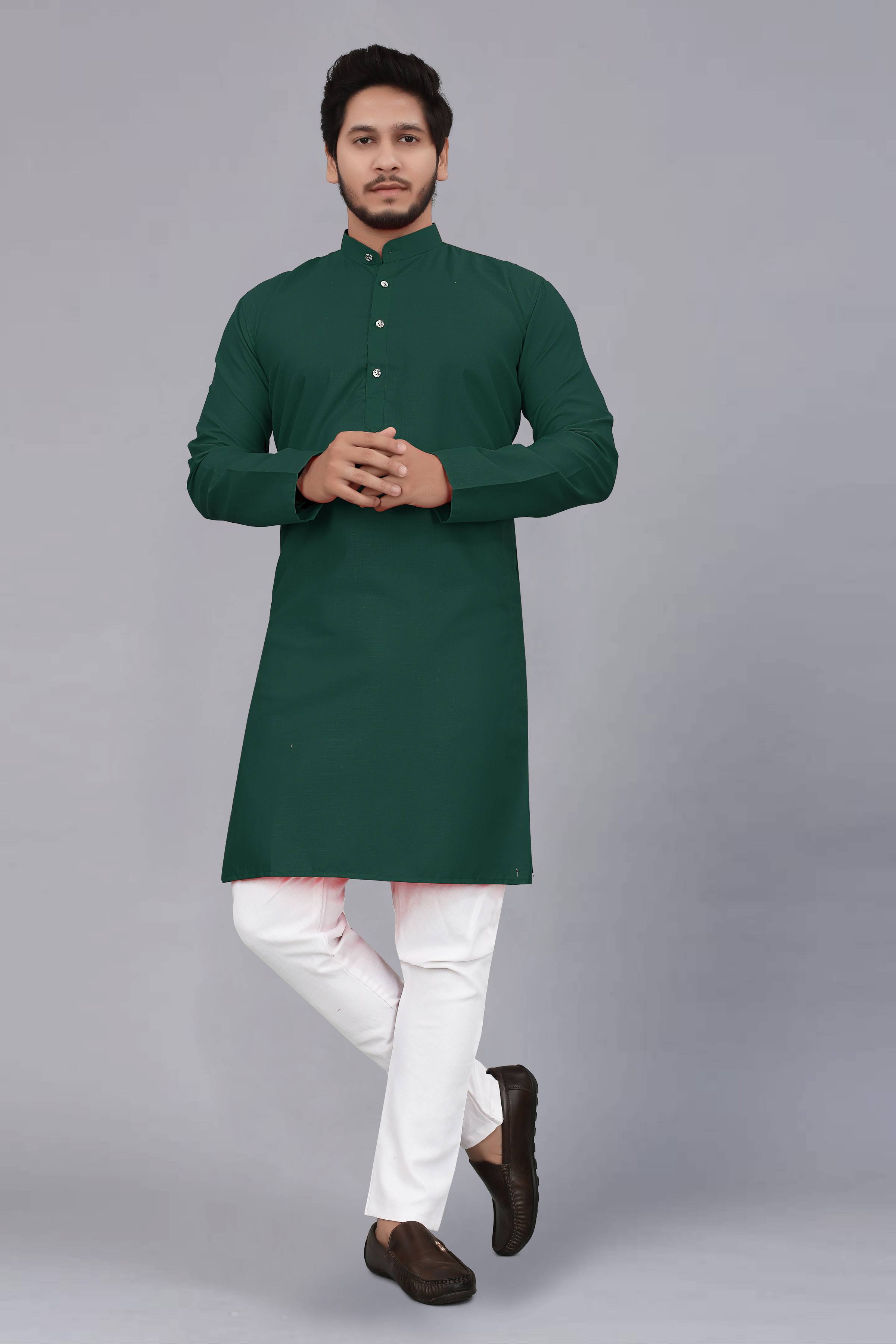 This kurta for men features long sleeves, round neck, mandarin collar, knee length and 2 side pockets Lightweight and breathable material gives this button down kurta for men a soft, comfortable feel. Made from natural cotton fabric. Relax fit provide added comfort, ideal for warmer weather. We recommend ordering a size larger for a loose fit.Available size chest S(38), M(40), L(42), XL(44), XXL(46). Please see the size chart in description or image section before ordering. Sizing is designed for a regular fit