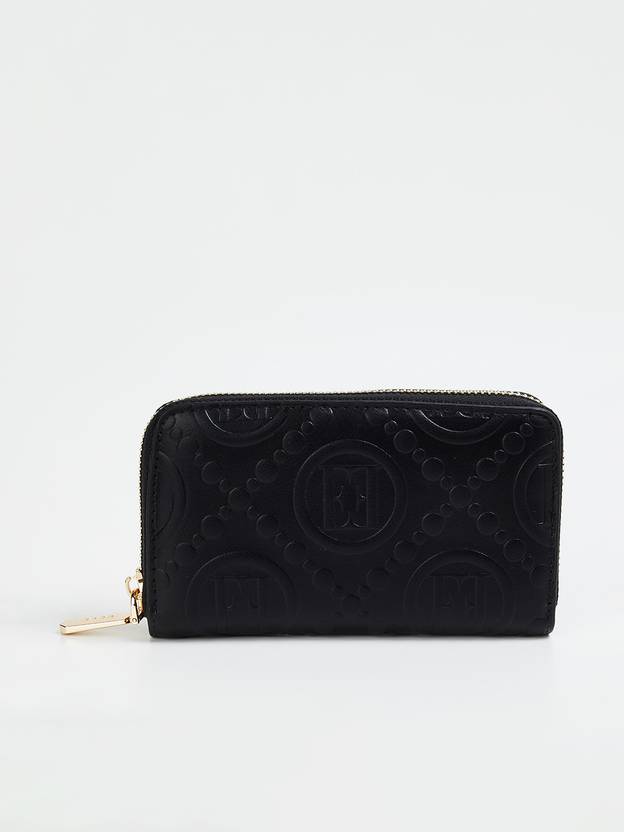 Women Black Artificial Leather Wallet (5 Card Slots)