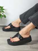 Elle Open Back, Round Toe, Solid Pattern Black Women Platform Sandals footwear designed specifically for women with an emphasis on comfort. These sandals are designed to provide support and ease of wear, making them ideal for everyday activities, casual outings, or even more formal occasions, depending on the style and design.