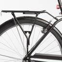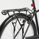 This pannier rack is designed for carrying your belongings on your bike: baggage, baskets, bags, etc.. A lightweight and inexpensive pannier rack that holds up to 10 kg. The top coil can support a basket or a bag.. POSITION : Rear,WHEEL SIZE : 700 mm,DISC BRAKE COMPATIBILITY : Disc brake compatible,LEVEL OF PRACTICE : BEGINNER. Quantity : 1 U,Size : * : *,Compatibility : Important: this pannier rack is not compatible with the following bike models: The B'Twin Original 7, road bikes, bikes with disc brakes, bikes not equipped with inserts on the wheel axle and on the rear stays, some electric bikes, full suspension mountain bikes, and folding bikes.,Visibility : This product has a space for fitting a VIOO Clip, an LED light that can be clipped on and off anywhere in one easy step. With a red or white light that can be used in continuous or flashing mode, the VIOO Clip makes you clearly visible from up to 120 m away. Battery life is 9 hours in flashing mode, 4½ hours in continuous mode. Easy to charge using a USB cable.,Composition : Frame: Aluminium and steel.