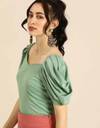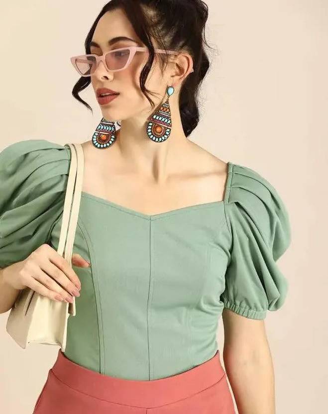 This Stylish Puff Shoulder Sleeve top is Bring for you by cutext fashion brand perfect for collage, party and casula wear with today's trandy V neck top looks preety with any colour of jeans so grab this beautiful neck top for girls and women.