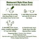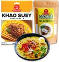 Authentic Flavor: Includes Burmese Khao Suey paste and coconut powder., Ready to Cook: Convenient and easy preparation., Serves 4: Ideal for family meals or gatherings., Vegetarian: Made with 100% vegetarian ingredients., Complete Kit: Contains 50g of paste and 50g of coconut powder.
