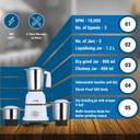 With an auto switch-off feature, this mixer-grinder stops its operations if it gets overheated, overloaded, or experiences voltage fluctuations.