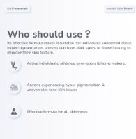 This face serum features kojic acid, known for its anti-ageing properties. It works to reduce wrinkles and fine lines, making your skin appear youthful. The serum helps in replenishing and rejuvenating, giving your complexion a renewed look. It's formulated for different skin types, ensuring that everyone can benefit from these nourishing effects.