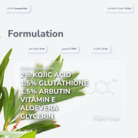 Kojic acid, glutathione, and arbutin form the core of this cleansing soap. Together, they work to reduce the appearance of dark spots, giving the skin a brighter look. These ingredients are well-known in skincare products and have been chosen for their specific skin-lightening properties. With regular use, the soap can therefore play a crucial role in maintaining the overall even nature of your skin tone and texture.
