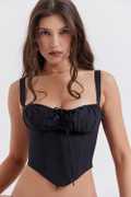 Perfect to match well with pants, shorts, wide leg pants, jeans and skirt for a stylish look. On summer, wear it along with your favorite pair of shorts Catalina Black Bustier Top