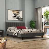 Elyscraft Modern Fabric King Size Bed with Soft Cushioned Headboard for Bedroom/Hotel Engineered Wood King Bed (Finish Color - Dark Grey, Delivery Condition - DIY(Do-It-Yourself))