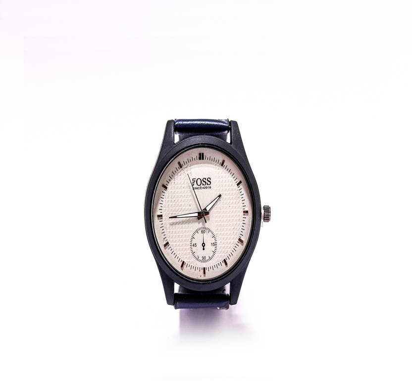 men’s casual watch features a round stainless steel case with a white dial and gridlines for time markers along with dual-tone minute and hour sleek hands. Faux blue leather band with buckle closure; interchangeable with all Foss watch straps.An absolute present for the Wedding day, Birthday, Valentines’ day, Christmas, Thanksgiving Day, etc, whichever Brings you a ton of compliments from your friends and your loved ones.