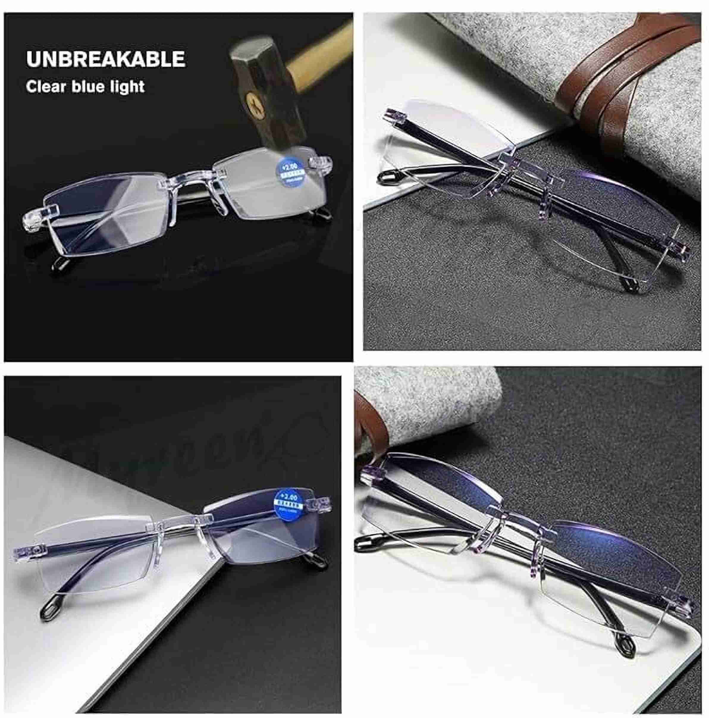 Experience clear vision with comfort and style using Elyvo Rimless Blue Cut Reading Glasses. Designed for those who spend long hours reading or working on digital screens, these glasses feature advanc...more