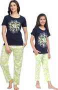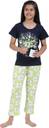 Women Top & Pyjama Set Black Printed