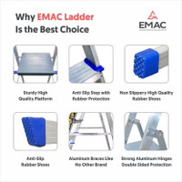 EMAC Aluminium 3 Steps Folding Ladder for Home, Shop & Office Use Slip Resistant Step Aluminium Ladder (With Platform)