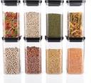 EMBICON Plastic Grocery Container - 1500 ml (Pack of 8, Black, Clear)