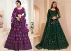 Embroidered Semi Stitched Lehenga Choli (Green, Purple)