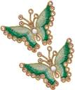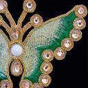 This beautiful trim is in the shape of a butterfly. It is hand embroidered with art silk and zari threads that refine the design with delightful shine. Multifaceted rhinestones are glued on the design to make it look more appealing. This applique can be easily hand stitched or machine stitched on any fabric.