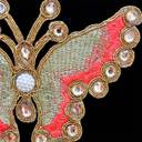 This beautiful trim is in the shape of a butterfly. It is hand embroidered with art silk and zari threads that refine the design with delightful shine. Multifaceted rhinestones are glued on the design to make it look more appealing. This applique can be easily hand stitched or machine stitched on any fabric.