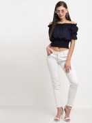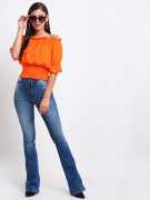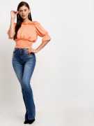 Emeros presents to you the latest fashion statement in form of this trending crop top, accompanied by smocked bodice and frill sleeves. This off-shoulder piece shall definitely be the attraction, be it any occasion! Be Beautifully Chaotic!