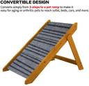 The dog stair can be easily converted from 3-step stair to a ramp help pets to reach sofas, beds and cars easily., Made of smooth premium pine wood., The soft and non-slip fabric on dog ramp is friendly for your dog's paws and can provide more traction.