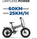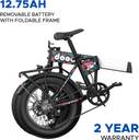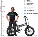 Courtesy of its robust build, this electric bicycle is designed to withstand various terrains and weather conditions. The aluminium alloy 6061 foldable frame ensures durability and sturdiness while offering the convenience of foldability for easy storage and transport. And, the dual-disc brakes provide reliable stopping power, giving you peace of mind during your rides.